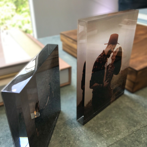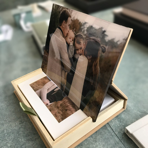 • Caixa com tampo em fotografia e acrílico que se transforma em porta-retrato